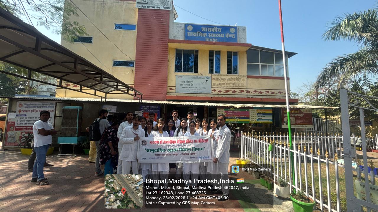 Narayanshree Homoeopathy Medical College and Hospital (NSHMC) is a premier institution dedicated to excellence in homoeopathic education, research, and clinical practice. The college strives to simplify and strengthen the science of homoeopathy through a uniquely structured and effective curriculum designed in accordance with the guidelines of the National Commission for Homoeopathy (NCH) and Madhya Pradesh Medical Science University (MPMSU).