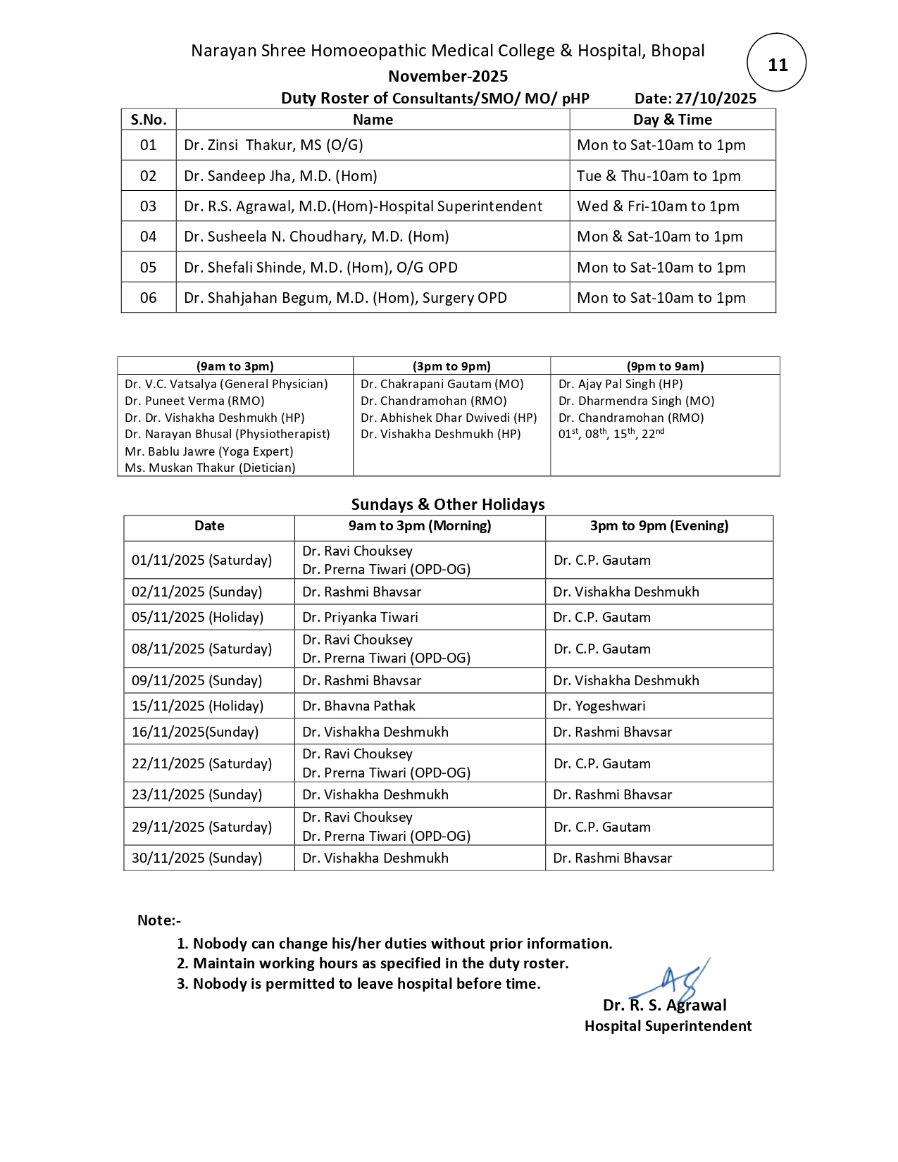 November-2025(Duty Roster of Consultants/SMO/ MO/ HP)