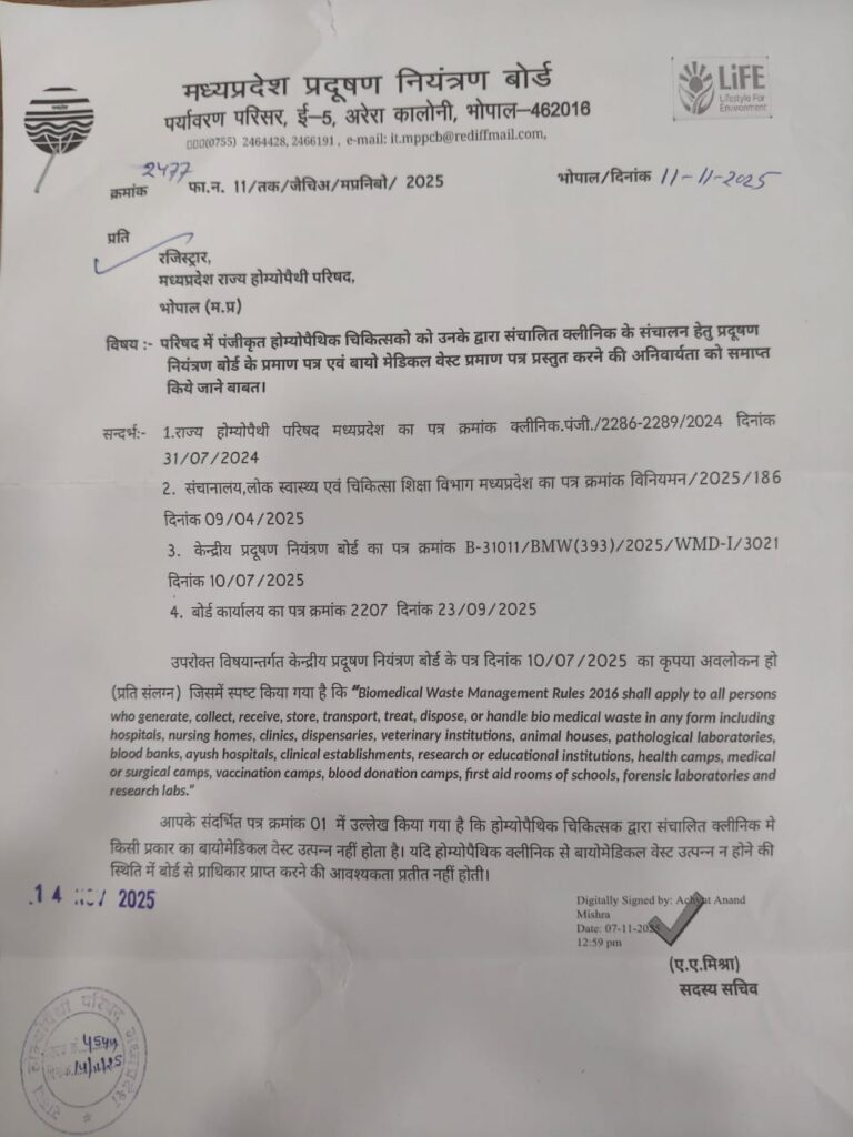 • Permission letter from CMHO Bhopal for PHC Visit of BHMS-I Prof. CBDC
