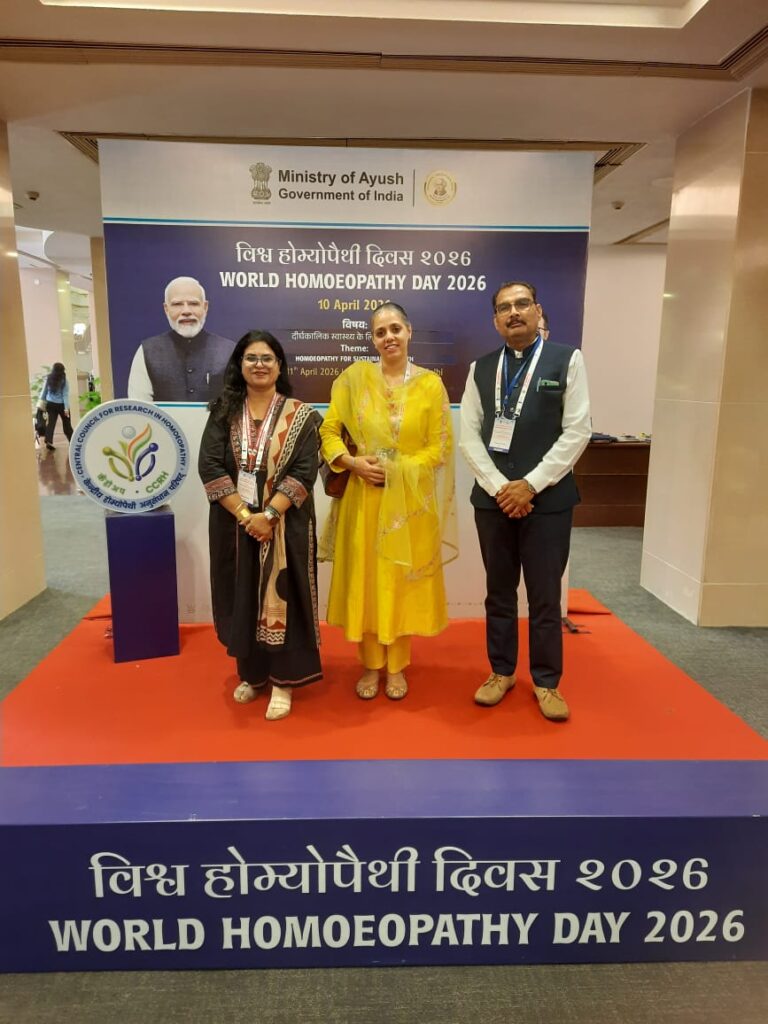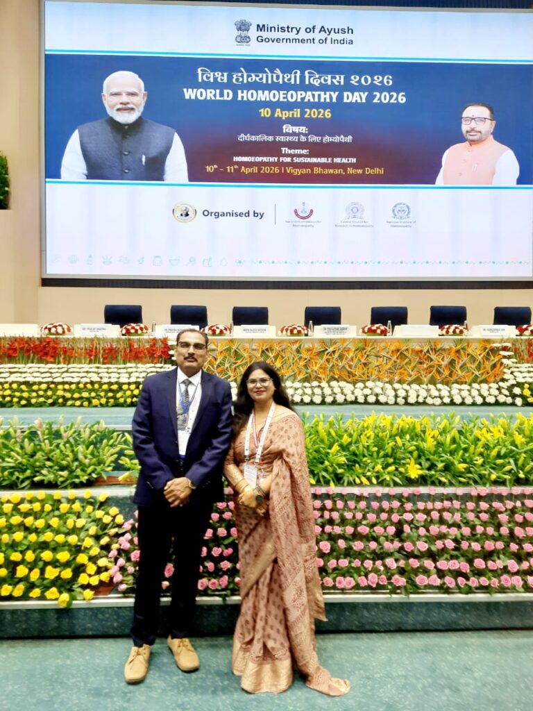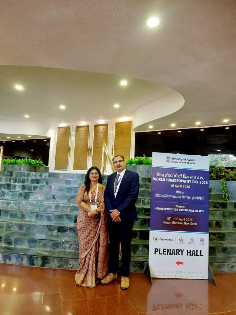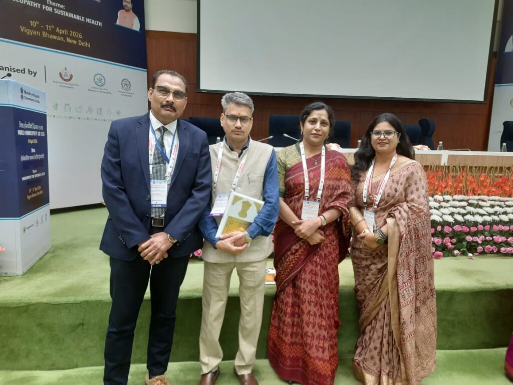 Senior Professors Dr. Sandeep Sharma, HOD Department of Homoeopathic Pharmacy & Dr. Neelam Sharma, HOD Department of Homoeopathic Materia Medica represented the Institute in grand celebration of World Homoeopathic Day to commemorate 271st Birth Anniversary of founder of Homoeopathy Dr. Samuel Hahnemann jointly organized by NCH, New Delhi, CCRH, New Delhi & NIH Kolkata & Delhi Satellite Branch on 10th & 11th April 2026 at Vigyan Bhawan, New Delhi.