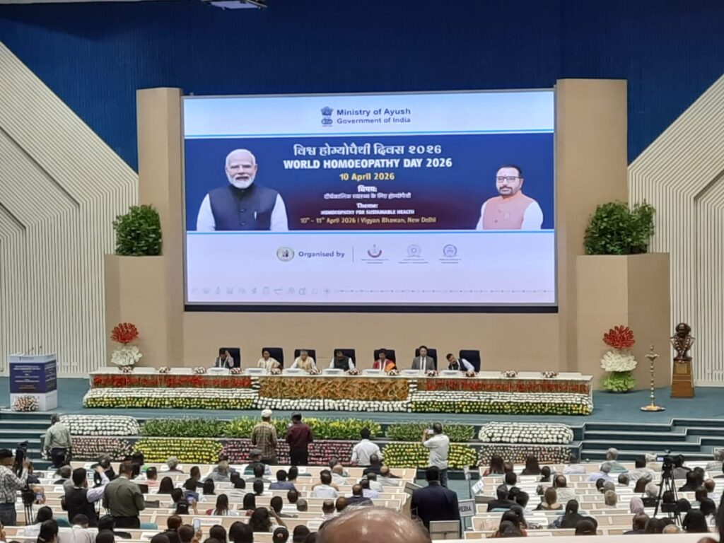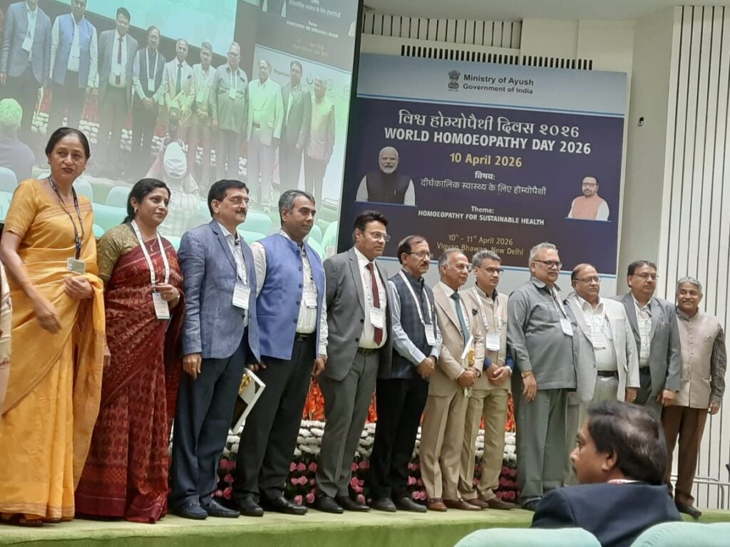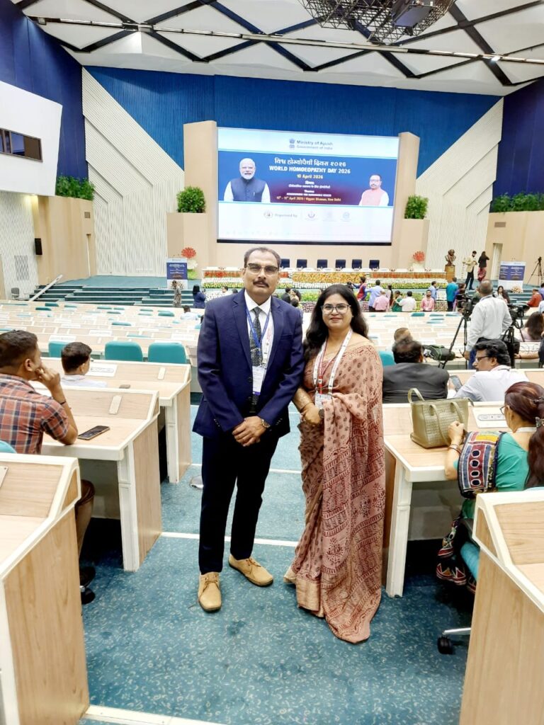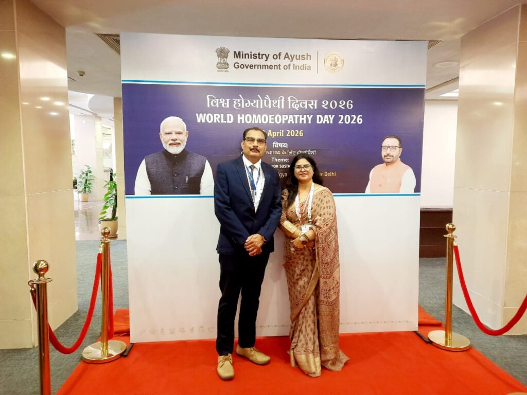 Senior Professors Dr. Sandeep Sharma, HOD Department of Homoeopathic Pharmacy & Dr. Neelam Sharma, HOD Department of Homoeopathic Materia Medica represented the Institute in grand celebration of World Homoeopathic Day to commemorate 271st Birth Anniversary of founder of Homoeopathy Dr. Samuel Hahnemann jointly organized by NCH, New Delhi, CCRH, New Delhi & NIH Kolkata & Delhi Satellite Branch on 10th & 11th April 2026 at Vigyan Bhawan, New Delhi.